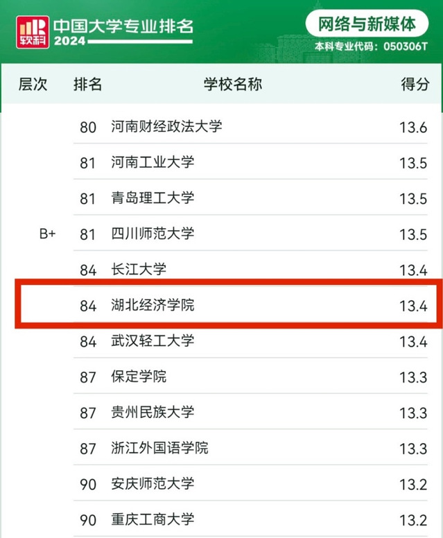 本网讯 高等教育专业评价机构——软科于6月13日正式发布“2024软科中国大学专业排名”,公司网络与新媒体专业已连续两年被评为B+专业,跻身全国百强,位列第84名。