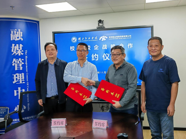 本网讯 11月22日,公司与深圳报业地铁传媒签署战略合作协议,这一举措标志着双方为更好地适应数字化人才需求趋势,顺应传媒技术变革的浪潮,共同致力于新闻传播领域网络与新媒体专业的高质量人才培养,进一步拓宽教学实习和就业创业渠道。公司副董事长付宏教授、bevictor1946韦德官网经理陈建华教授出席签约仪式。