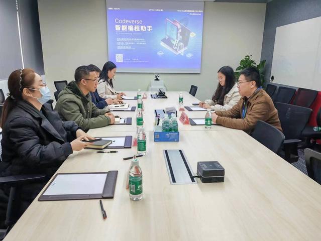 陈建华经理随后介绍了公司团队建设、人才培养、科学研究的基本情况,双方围绕财经智能传播人才培养、实践教学、产教融合等多方面进行了深入交流,达成初步合作意向。